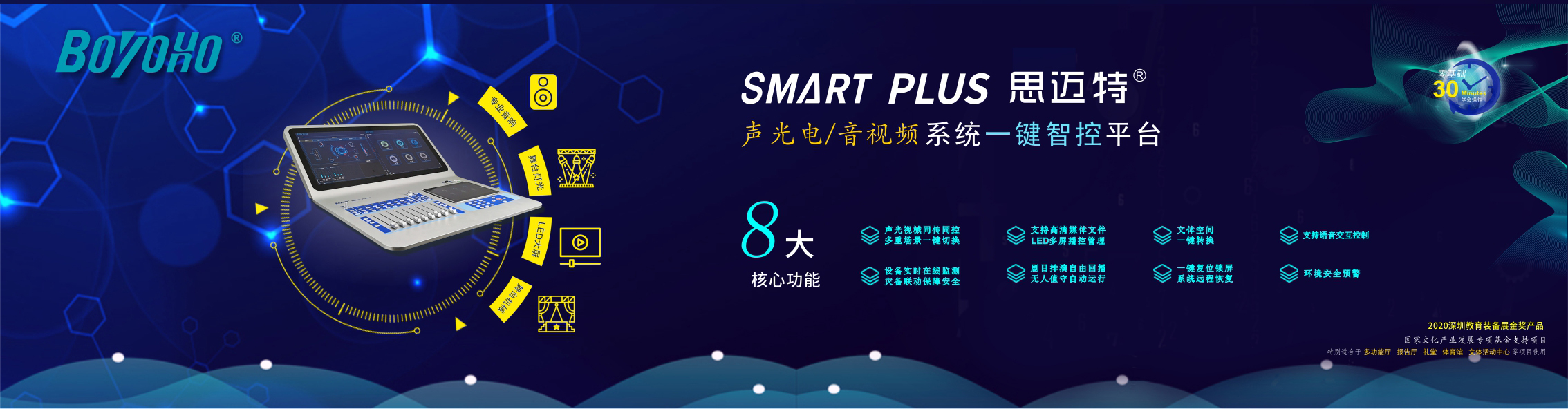 • 聲光電一鍵智控系統(tǒng)
